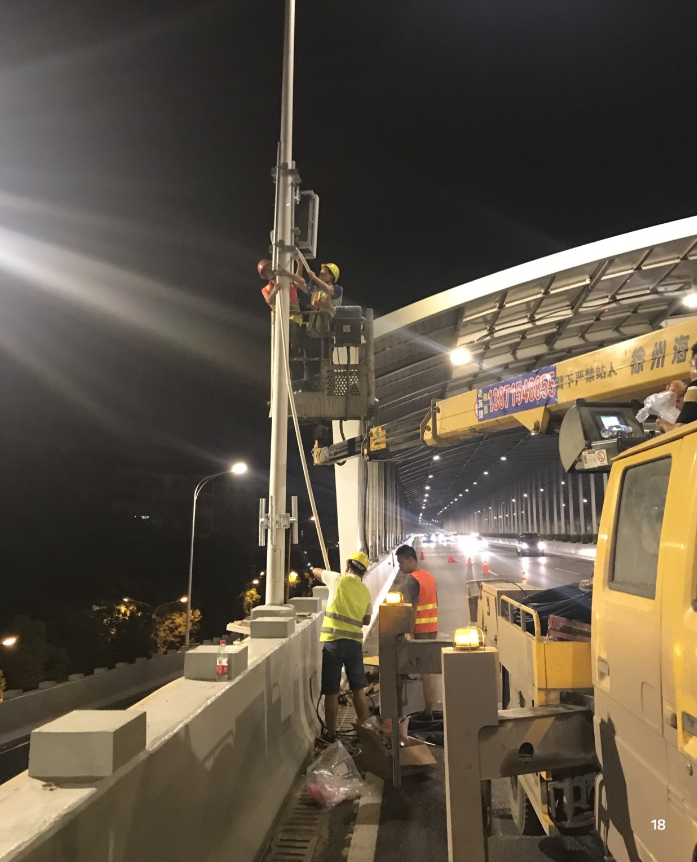 五桥一线5G基站利用现有共用杆塔,根据桥隧特殊环境而建。项目内容包括5G设备安装、供电设计与安装、通信线缆建设以及系统调试。项目自2019年8月开始建设,于2019年10月投 入使用。