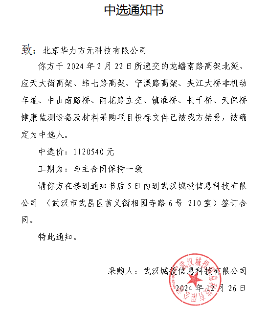 中选通知书